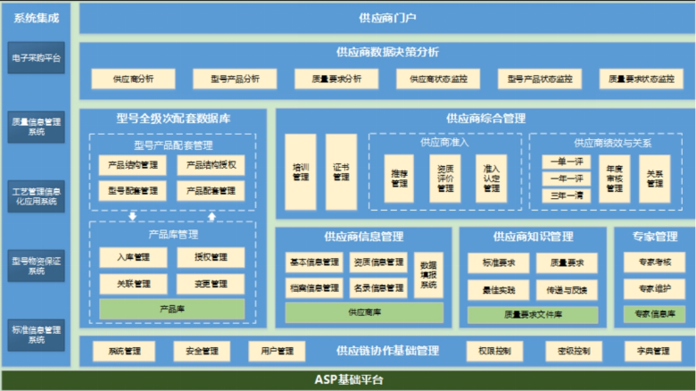 • 全級次供應商管理系統按照對供應商“全領域、全級次、全過程和全要素”管理的要求,以實現“全領域、全級次、全過程、全要素”覆蓋的供應商管理工作為目標,對供應商管理活動中產生的各類信息進行統一歸集與管理。系統通過供應商信息管理、綜合管理、型號/產品數字結構管理、決策分析等功能模塊,實現對供應商全生命周期過程管理和各類信息的管理管控。通過系統的實施,可實現供應商管理業務的 “信息服務、業務支撐、決策支持、風險管控”,不斷提升企業供應鏈現代化水平。